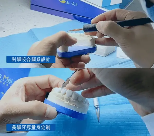 植牙後配備資深美學修復技師,提供科學咬合關係設計,量身訂制高質量牙冠。條件適合的顧客,可實現種植牙修復,無牙而來、有牙而歸。
